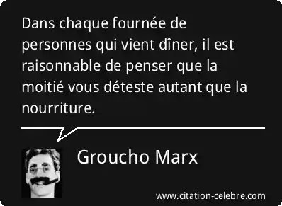 Dans chaque fournée de personnes qui vient dîner, il est raisonnable de penser que la moitié vous déteste autant que la nourriture.