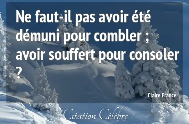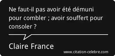 Citation Claire France avoir : Ne faut-il pas avoir été démuni pour combler ; avoir...