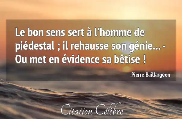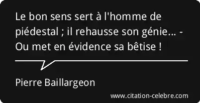 Citation Pierre Baillargeon homme : Le bon sens sert à l'homme de piédestal ; il...