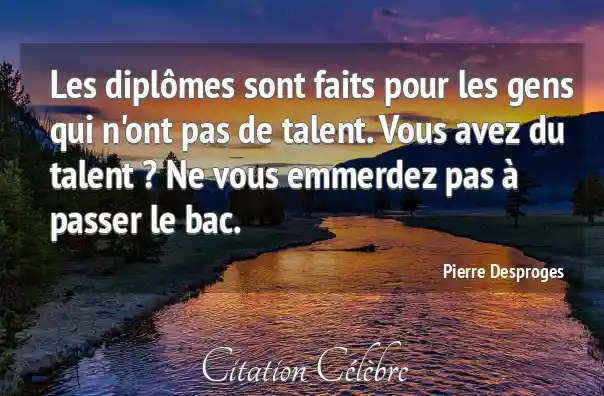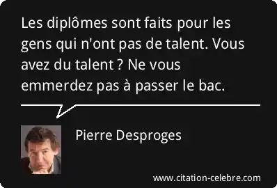 Les diplômes sont faits pour les gens qui n'ont pas de talent. Vous avez du talent ? Ne vous emmerdez pas à passer le bac.