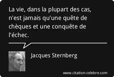 La vie, dans la plupart des cas, n'est jamais qu'une quête de chèques et une conquête de l'échec.