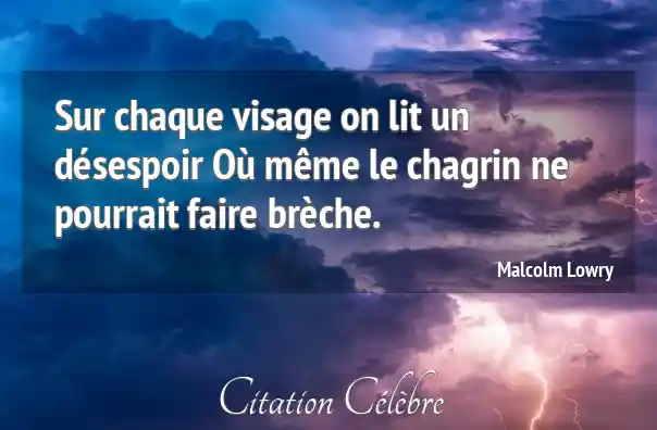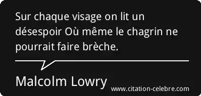 Citation Malcolm Lowry chaque : Sur chaque visage on lit un désespoir Où même le...