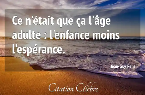 Ce n'était que ça l'âge adulte : l'enfance moins l'espérance.
