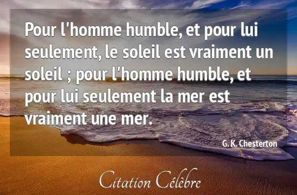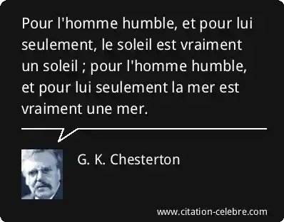 Pour l'homme humble, et pour lui seulement, le soleil est vraiment un soleil ; pour l'homme humble, et pour lui seulement la mer est vraiment une mer.
