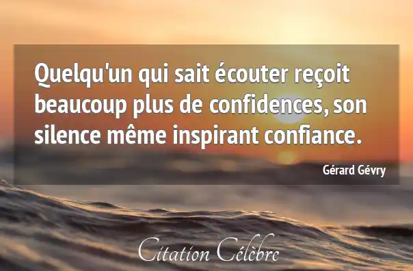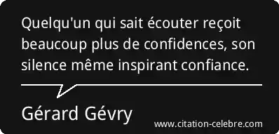 Quelqu'un qui sait écouter reçoit beaucoup plus de confidences, son silence même inspirant confiance.