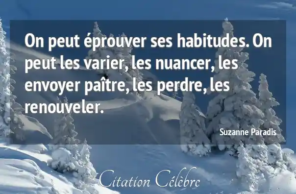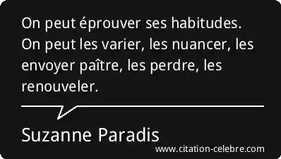 On peut éprouver ses habitudes. On peut les varier, les nuancer, les envoyer paître, les perdre, les renouveler.