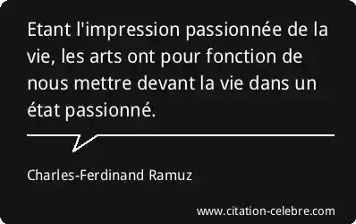 Etant l'impression passionnée de la vie, les arts ont pour fonction de nous mettre devant la vie dans un état passionné.