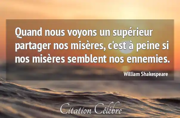 Quand nous voyons un supérieur partager nos misères, c'est à peine si nos misères semblent nos ennemies.