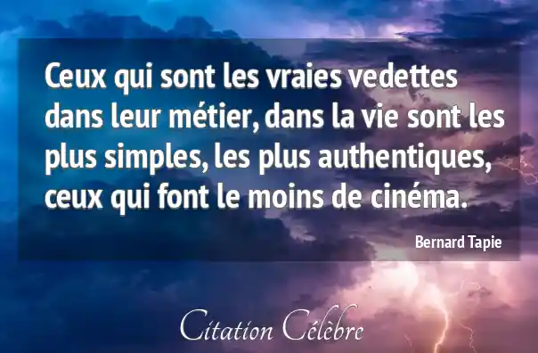 Ceux qui sont les vraies vedettes dans leur métier, dans la vie sont les plus simples, les plus authentiques, ceux qui font le moins de cinéma.