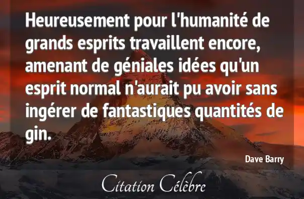 Heureusement pour l'humanité de grands esprits travaillent encore, amenant de géniales idées qu'un esprit normal n'aurait pu avoir sans ingérer de fantastiques quantités de gin.