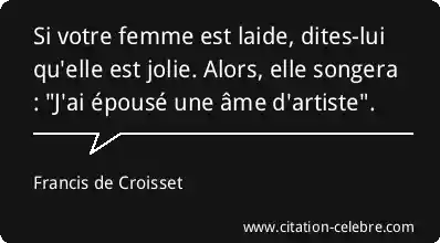 Si votre femme est laide, dites-lui qu'elle est jolie. Alors, elle songera : "J'ai épousé une âme d'artiste".