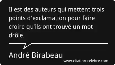 Il est des auteurs qui mettent trois points d'exclamation pour faire croire qu'ils ont trouvé un mot drôle.