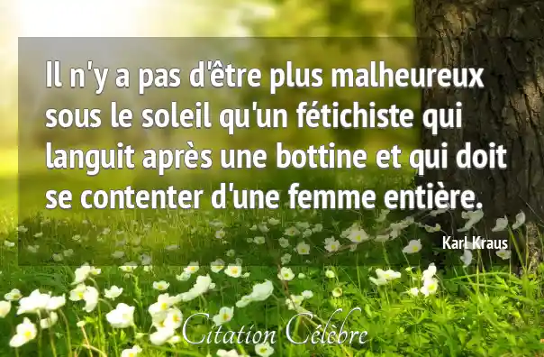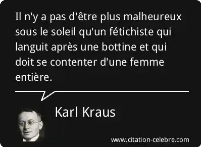 Il n'y a pas d'être plus malheureux sous le soleil qu'un fétichiste qui languit après une bottine et qui doit se contenter d'une femme entière.