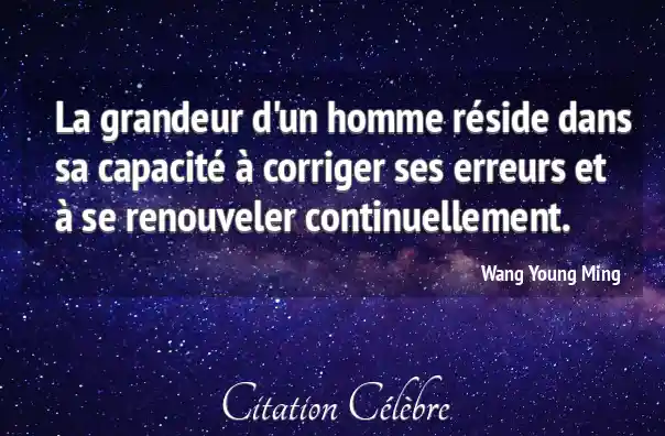 La grandeur d'un homme réside dans sa capacité à corriger ses erreurs et à se renouveler continuellement.