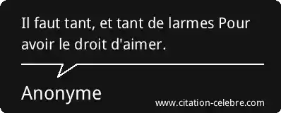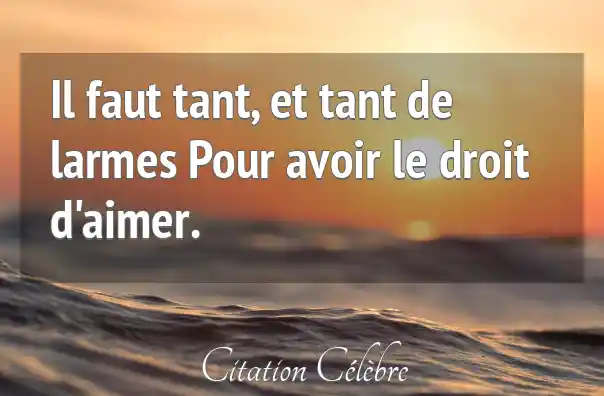 Il faut tant, et tant de larmes Pour avoir le droit d'aimer.