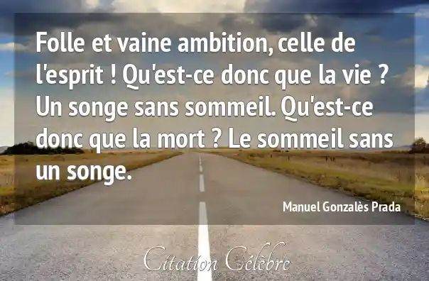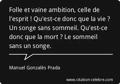Folle et vaine ambition, celle de l'esprit ! Qu'est-ce donc que la vie ? Un songe sans sommeil. Qu'est-ce donc que la mort ? Le sommeil sans un songe.