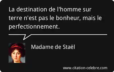 La destination de l'homme sur terre n'est pas le bonheur, mais le perfectionnement.