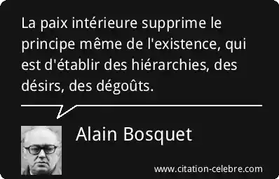La paix intérieure supprime le principe même de l'existence, qui est d'établir des hiérarchies, des désirs, des dégoûts.