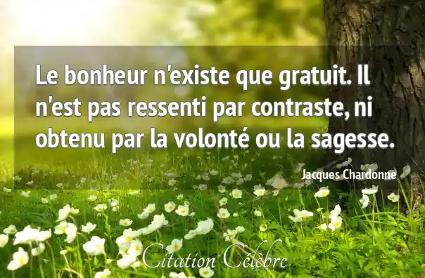Le bonheur n'existe que gratuit. Il n'est pas ressenti par contraste, ni obtenu par la volonté ou la sagesse.