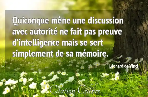 Quiconque mène une discussion avec autorité ne fait pas preuve d'intelligence mais se sert simplement de sa mémoire.