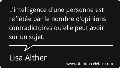 L'intelligence d'une personne est reflétée par le nombre d'opinions contradictoires qu'elle peut avoir sur un sujet.