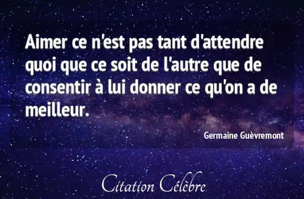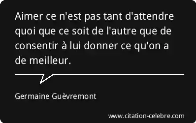 Aimer ce n'est pas tant d'attendre quoi que ce soit de l'autre que de consentir à lui donner ce qu'on a de meilleur.