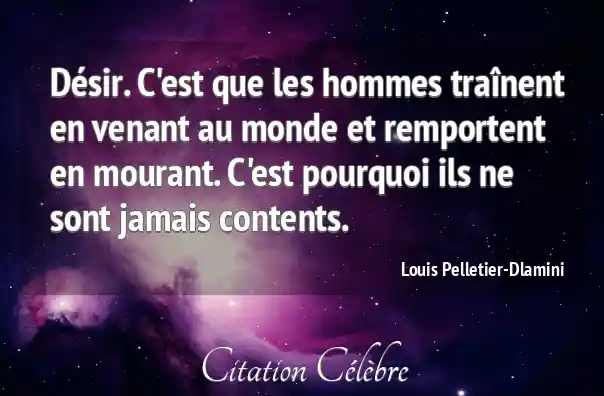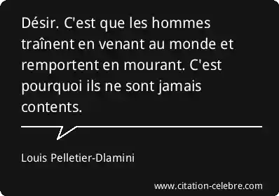 Désir. C'est que les hommes traînent en venant au monde et remportent en mourant. C'est pourquoi ils ne sont jamais contents.