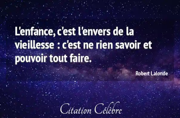 L'enfance, c'est l'envers de la vieillesse : c'est ne rien savoir et pouvoir tout faire.