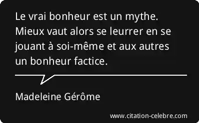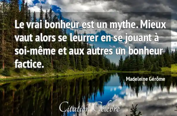 Le vrai bonheur est un mythe. Mieux vaut alors se leurrer en se jouant à soi-même et aux autres un bonheur factice.