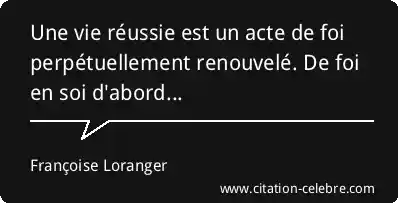 Une vie réussie est un acte de foi perpétuellement renouvelé. De foi en soi d'abord...
