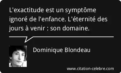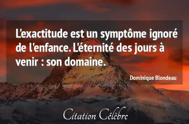 L'exactitude est un symptôme ignoré de l'enfance. L'éternité des jours à venir : son domaine.