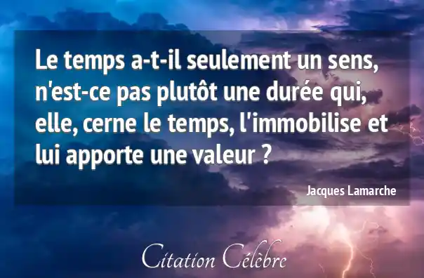 Le temps a-t-il seulement un sens, n'est-ce pas plutôt une durée qui, elle, cerne le temps, l'immobilise et lui apporte une valeur ?