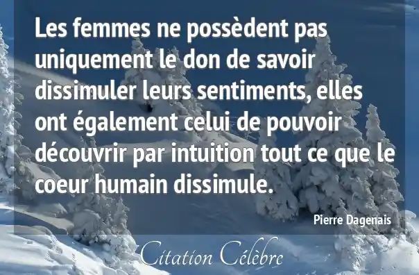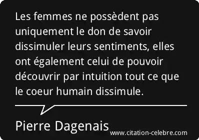 Les femmes ne possèdent pas uniquement le don de savoir dissimuler leurs sentiments, elles ont également celui de pouvoir découvrir par intuition tout ce que le coeur humain dissimule.