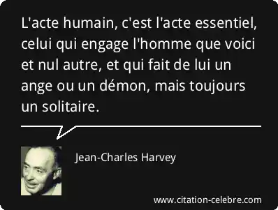 L'acte humain, c'est l'acte essentiel, celui qui engage l'homme que voici et nul autre, et qui fait de lui un ange ou un démon, mais toujours un solitaire.