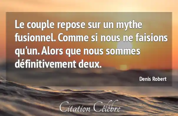 Le couple repose sur un mythe fusionnel. Comme si nous ne faisions qu'un. Alors que nous sommes définitivement deux.