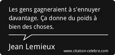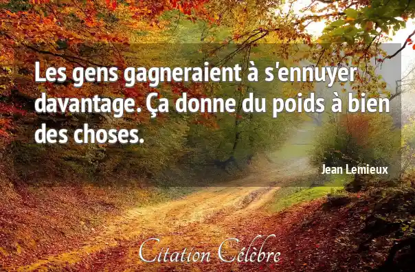 Les gens gagneraient à s'ennuyer davantage. Ça donne du poids à bien des choses.