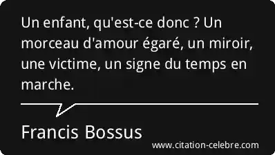 Un enfant, qu'est-ce donc ? Un morceau d'amour égaré, un miroir, une victime, un signe du temps en marche.
