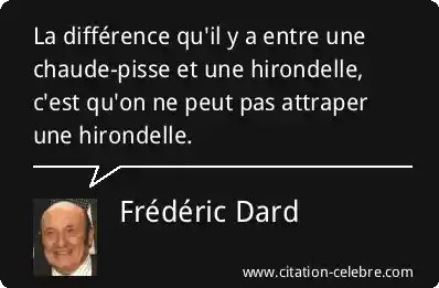 La différence qu'il y a entre une chaude-pisse et une hirondelle, c'est qu'on ne peut pas attraper une hirondelle.
