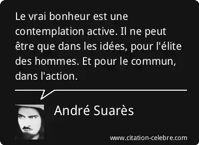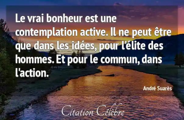 Le vrai bonheur est une contemplation active. Il ne peut être que dans les idées, pour l'élite des hommes. Et pour le commun, dans l'action.