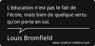 L'éducation n'est pas le fait de l'école, mais bien de quelque vertu qu'on porte en soi.