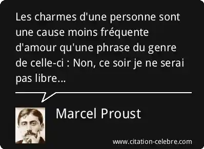 Les charmes d'une personne sont une cause moins fréquente d'amour qu'une phrase du genre de celle-ci : Non, ce soir je ne serai pas libre...