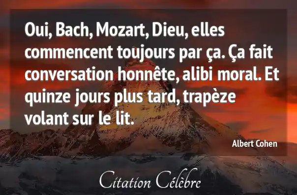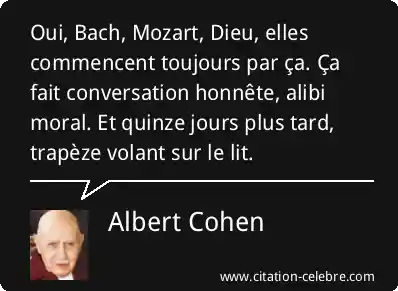 Oui, Bach, Mozart, Dieu, elles commencent toujours par ça. Ça fait conversation honnête, alibi moral. Et quinze jours plus tard, trapèze volant sur le lit.