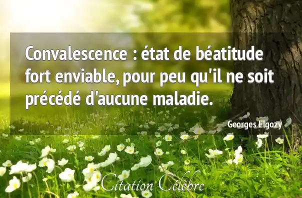 Convalescence : état de béatitude fort enviable, pour peu qu'il ne soit précédé d'aucune maladie.