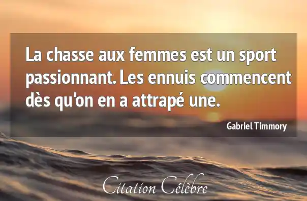 La chasse aux femmes est un sport passionnant. Les ennuis commencent dès qu'on en a attrapé une.