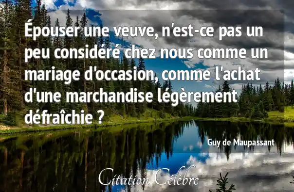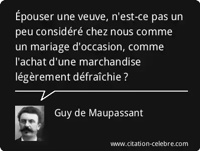 Épouser une veuve, n'est-ce pas un peu considéré chez nous comme un mariage d'occasion, comme l'achat d'une marchandise légèrement défraîchie ?