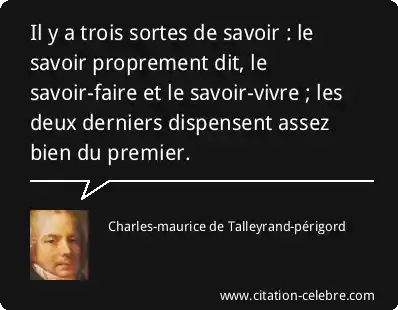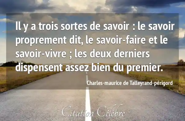 Il y a trois sortes de savoir : le savoir proprement dit, le savoir-faire et le savoir-vivre ; les deux derniers dispensent assez bien du premier.