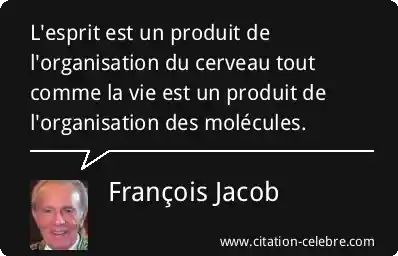 L'esprit est un produit de l'organisation du cerveau tout comme la vie est un produit de l'organisation des molécules.