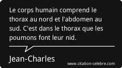 Le corps humain comprend le thorax au nord et l'abdomen au sud. C'est dans le thorax que les poumons font leur nid.