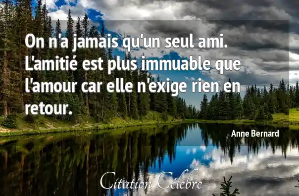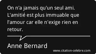 Citation Anne Bernard amour : On n'a jamais qu'un seul ami. L'amitié est plus immuable...