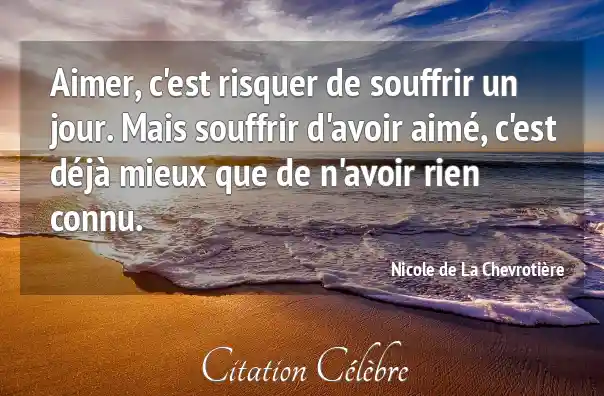Aimer, c'est risquer de souffrir un jour. Mais souffrir d'avoir aimé, c'est déjà mieux que de n'avoir rien connu.
